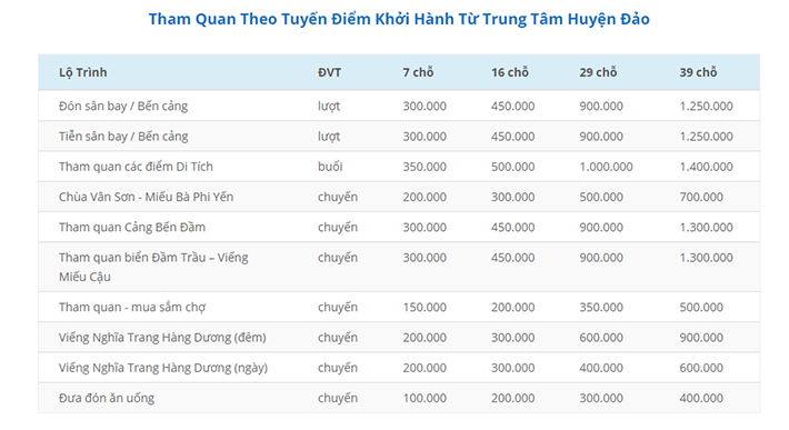 - Quý khách vui lòng thanh toán phí bến bãi tham quan (nếu có) , Giá áp dụng cho ngày cuối tuần ( thứ 6, thứ 7 , chủ nhật) còn ngày từ thứ 2- thứ 5 , giá trên giảm 200.000 đối với xe 7, 16c , xe 29c giảm 300.000 đ.